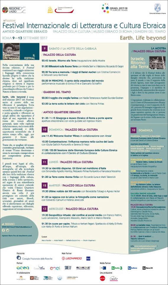 Il programma della manifestazione (Roma, 9 -13 settembre), che viene riproposta ormai da qualche anno nella capitale, è stato presentato questa mattina al Museo ebraico.
