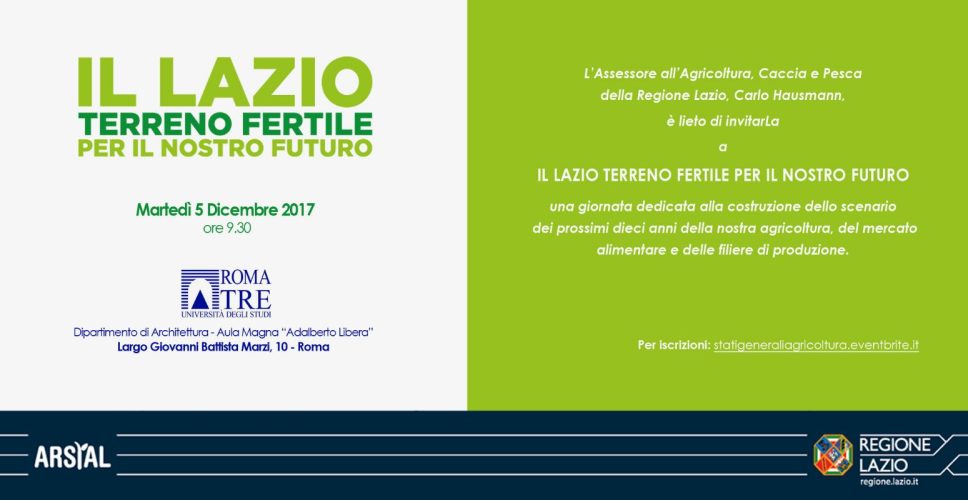 Alle ore 12,00 – Tavola Rotonda “Lazio terreno fertile: l’opinione degli esperti”, con l’intervento tra gli altri dell’amministratore unico di Arsial, Antonio Rosati.