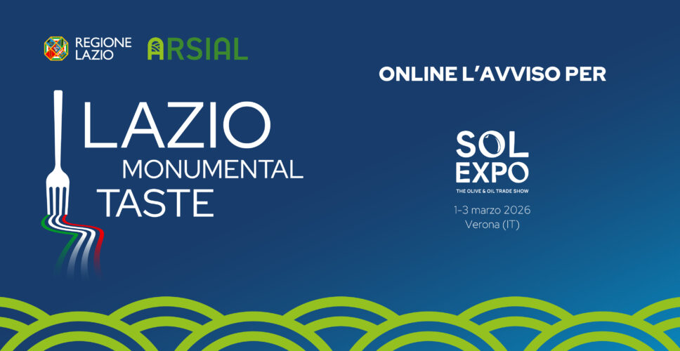 È online sul portale Arsial l’avviso pubblico rivolto alle imprese della filiera olivicola interessate a partecipare a Sol Expo 2026, in programma a Verona dal 1° al 3 marzo 2026.