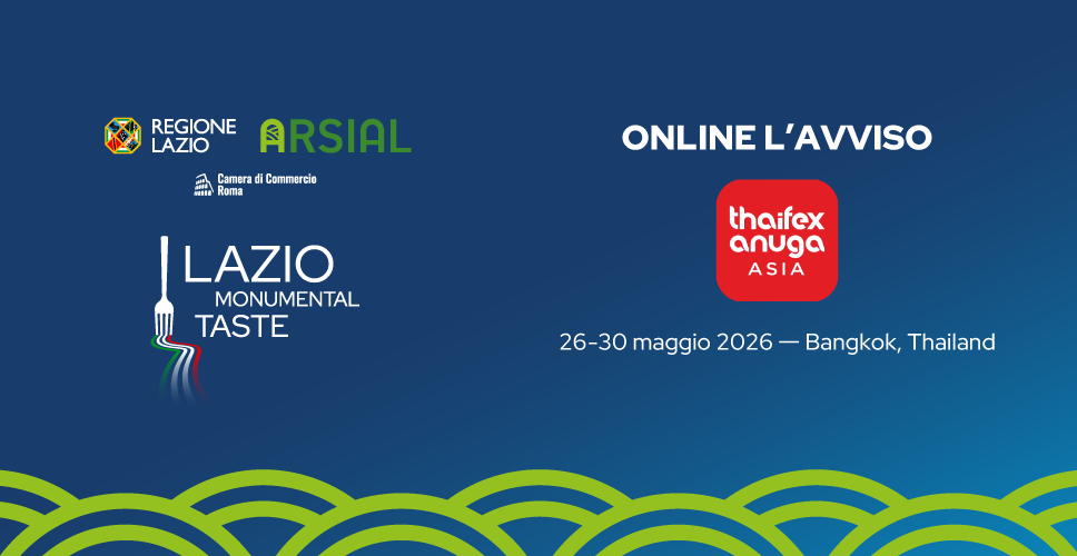 La Regione Lazio e Arsial promuovono la partecipazione delle imprese laziali alla manifestazione fieristica internazionale THAIFEX – ANUGA Asia 2026, in programma a Bangkok dal 26 al 30 maggio 2026 presso l’IMPACT Exhibition and Convention Center.