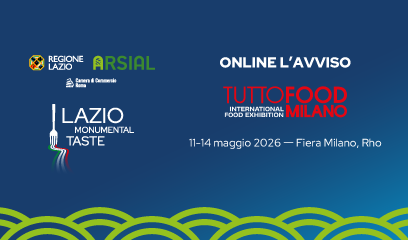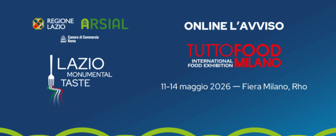 Regione Lazio e Arsial organizzano la partecipazione delle aziende laziali alla manifestazione fieristica TUTTOFOOD, [...]